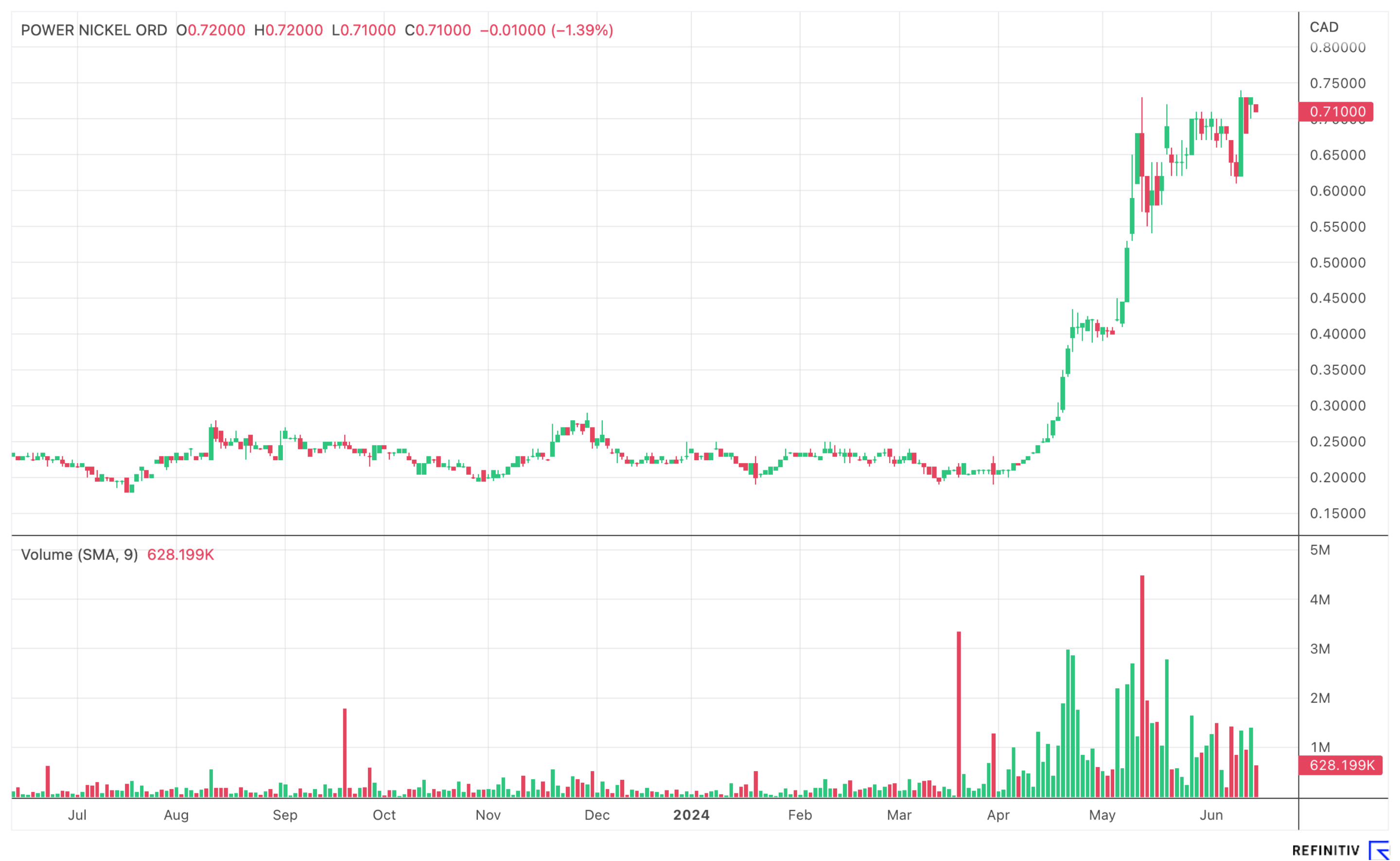 Vor dem Hintergrund, dass die Lagerstätten für Kanada von großer Bedeutung werden können, ist das Unternehmen beim Schlusskurs von 0,71 CAD und 120,8 Mio. CAD Börsenwert, nach wie vor attraktiv bewertet. Die 20 Mio. CAD Flow-Through Finanzierung findet zum Kurs von 1,25 CAD statt.