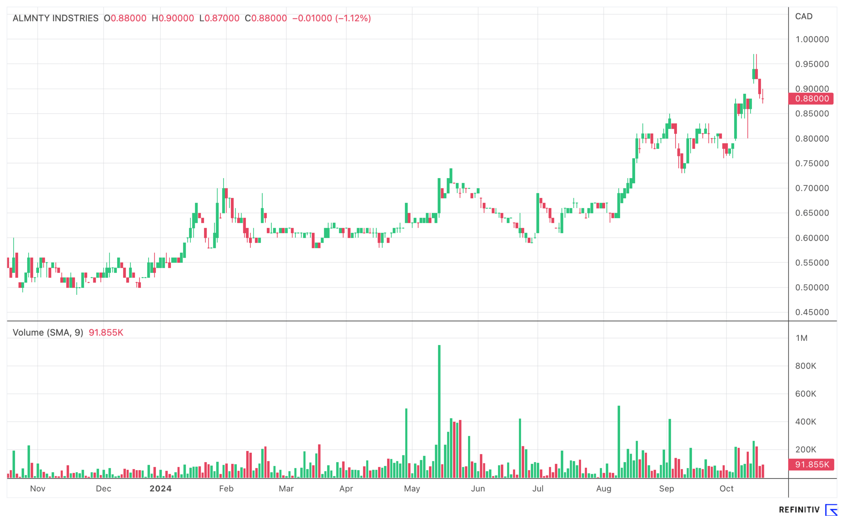 Das Treffen der BRICS-Staaten in Kasan und die wachsende Bedeutung strategischer Rohstoffe werden das geopolitische Gleichgewicht der kommenden Jahre prägen. Für Investoren bietet sich die Chance, in Unternehmen wie Almonty Industries (WKN: A1JSSD | ISIN: CA0203981034 | Ticker-Symbol: ALI) zu investieren, die eine Schlüsselrolle in der globalen Verteidigungsstrategie und der Sicherung kritischer Ressourcen spielen. Diese Entwicklungen könnten nicht nur die globalen Märkte beeinflussen, sondern auch erhebliche Renditechancen für strategisch ausgerichtete Investitionen bieten. Es ist somit nur noch eine Frage der Zeit, bis die Almonty-Aktie die Marke von 1,00 CAD übersteigt. Sphene Capital hat erst kürzlich die Kaufempfehlung bestätigt und das Kursziel auf 2,31 CAD erhöht.