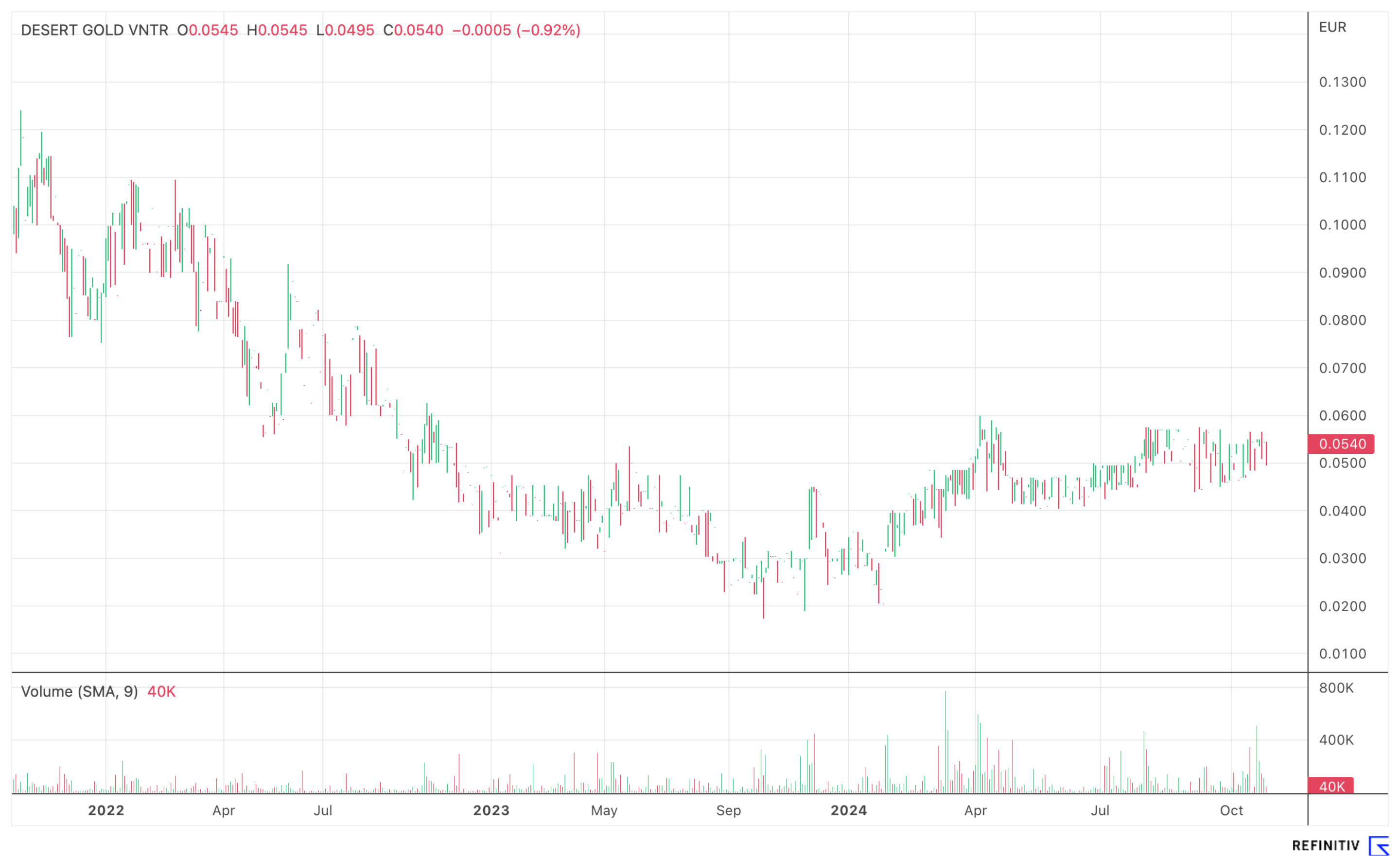 An der Heimatbörse in Toronto notierte die Aktie von Desert Gold Ventures zuletzt bei 0,08 CAD. Während das Handelsvolumen in den letzten Wochen angestiegen ist, scheint sich die Aktie noch in einer Phase relativer Unentdeckung zu befinden. Diese niedrige Bewertung könnte jedoch rasch der Vergangenheit angehören. In Deutschland ist die Aktie ebenfalls handelbar, was den Zugang für Investoren hierzulande erleichtert.