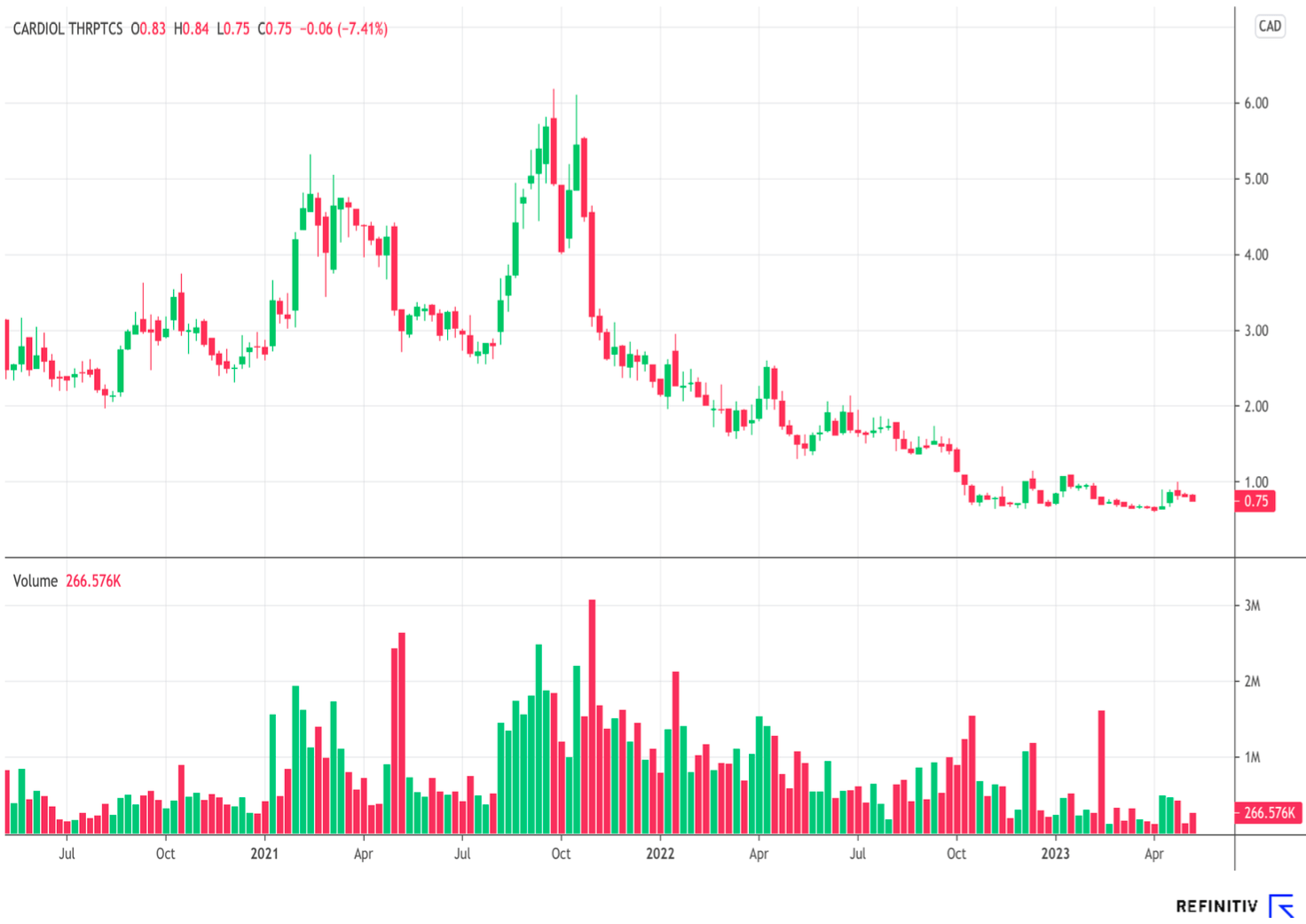 In 2021 wechselten die Aktien noch bei über 6,00 CAD die Besitzer, aktuell nur noch bei rund 0,80 CAD. Das Unternehmen befindet sich aktuell noch in Sippenhaft mit anderen kleinen Biotech-Gesellschaften, aber zu Unrecht, denn mit dem fetten Finanzpolster ist Cardiol eine absolute Ausnahme in dem Sektor der relativ jungen Unternehmen. Wir erleben momentan vereinfacht gesagt an der Börse im Bereich der Small- und Mid-Cap Unternehmen ein Bild, das man sonst von den Gezeiten kennt. Ebbe und Flut wechseln sich ab. Momentan herrscht Ebbe und es handelt sich um einen exzellenten Käufermarkt. Wer nicht verpassen will, dass die Aufmerksamkeit die Cardiol Aktie in den kommenden Tagen, Wochen und Monaten im Zusammenhang mit der Veröffentlichung der Studienergebnisse zunehmen wird, der steigt jetzt ein. Situationen und Chancen wie diese, sind eine exzellente Gelegenheit für die Vermögensbildung.