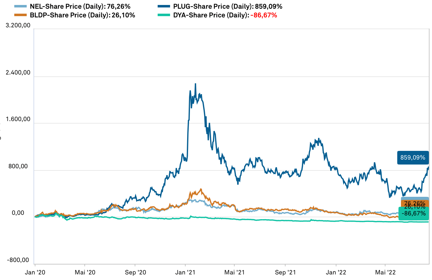 Im Vergleich zu anderen namhaften Wasserstoffunternehmen ist dynaCERT seit Covid-19 sprichwörtlich unter die Räder gekommen. Während seit dem 01.01.2020 die Aktien von Ballard Power (+26%), Nel ASA (+76%) und Plug Power (+869%) zulegen konnten, verloren die Anteile von dynaCERT (-86%) erheblich an Wert. Im Wesentlichen ist diese Entwicklung dadurch zu erklären, dass die anderen Unternehmen im Vergleich zu dynaCERT von Investitionen in Pilotprojekte profitierten. Dabei spielten auch Subventionen eine entscheidende Rolle.