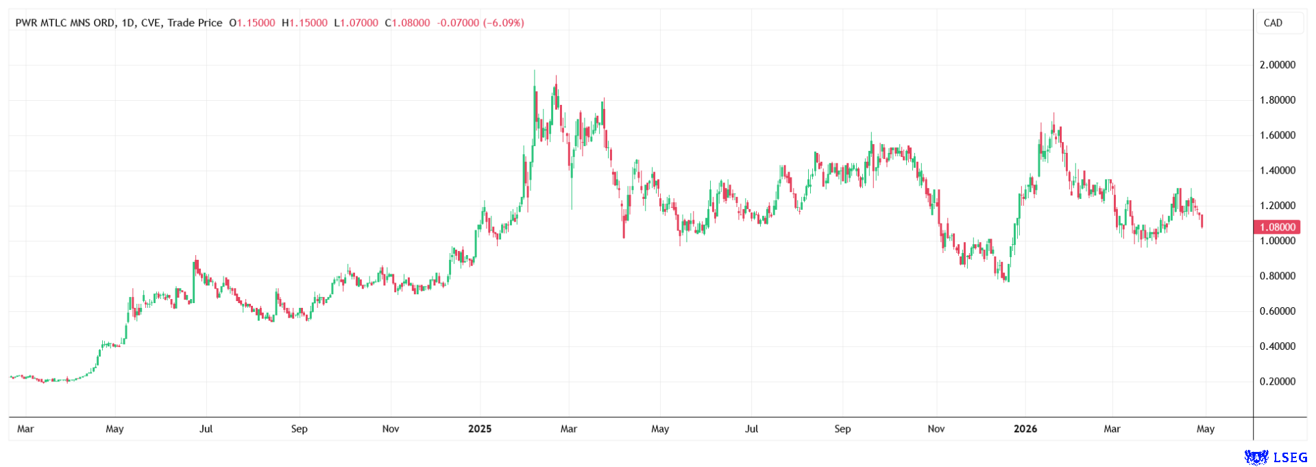 Obwohl die fundamentalen Daten hervorragend sind, hat die Aktie von Power Metallic Mines zuletzt eine Korrektur durchlaufen. Manchmal ist es eben auch wichtig, dass eine Aktie korrigiert, das sorgt sogar für ein gesundes Chartbild. Für kurzfristig orientierte Anleger mag das enttäuschend gewesen sein, doch für strategische Investoren ergibt sich dadurch ein mögliches, attraktives Einstiegsniveau. Die Aktie ist nun auf einer charttechnischen Unterstützung angekommen, von der aus sie wieder Fahrt nach oben aufnehmen könnte. Derzeit notiert sie um die 1,08 CAD. Massive Unterstützung liegt bei 1,00 CAD. In einem Umfeld, in dem Kupfer und Edelmetalle weltweit knapper werden, ist ein Projekt wie Nisk, das zudem noch auf Klimaneutralität setzt, ein begehrtes Gut. Nicht umsonst sind auch einige sehr vermögende Investoren mit an Bord.