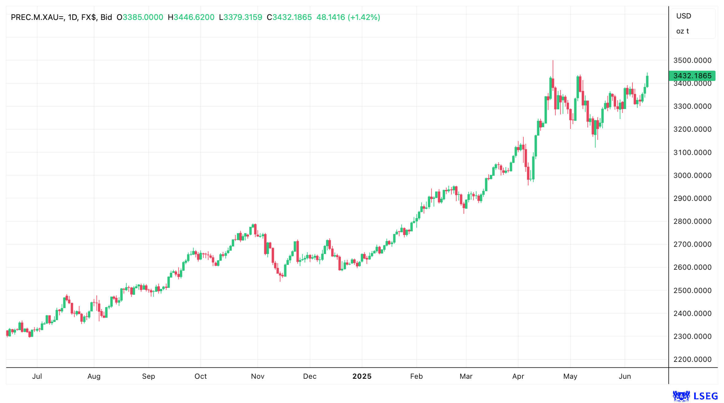 Der Zeitpunkt für den Einstieg könnte kaum besser sein. Aufgrund der eskalierenden Spannungen zwischen Iran und Israel hat der Goldpreis ein Rekordniveau erreicht. Mit über 3.442 USD je Feinunze notiert das Edelmetall in der Nähe des Allzeithochs – und ein Sprung über 3.500 USD scheint nur noch Formsache. In unsicheren Zeiten strömen Anleger traditionell in den „sicheren Hafen“ Gold. Unternehmen wie Desert Gold Ventures profitieren davon gleich doppelt: durch den steigenden Wert ihrer Goldvorkommen und durch ein wachsendes Anlegerinteresse.