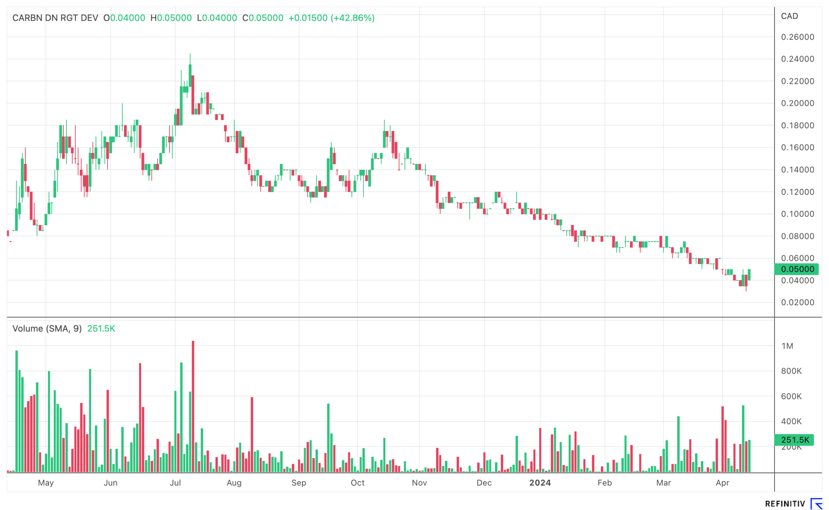 Der Aktienkurs von ‚Carbon Done Right‘ ist stark gebeutelt und bietet deshalb einen exzellenten Einstieg. Das Listing an der Londoner AIM ist ein weiterer Katalysator für einen Turnaround, denn dies wird den Bekanntheitsgrad und das Interesse für das Zukunftsunternehmen weiter steigern. Aufgrund des aktuellen Börsenwertes von weniger als 5 Mio. CAD, liegt es auf der Hand, dass man mit dem Kauf der Aktie früh im zu erwartenden Hype und aufgrund der Vorarbeiten des Unternehmens vergleichsweise günstig dabei ist. Im Juli 2023 wechselten die Aktien noch in der Spitze bei 0,25 CAD die Besitzer. Eine Finanzspritze, die höher als der gegenwärtige Börsenwert ist, bildet ein solides Fundament für einen zu erwartenden Kursanstieg.