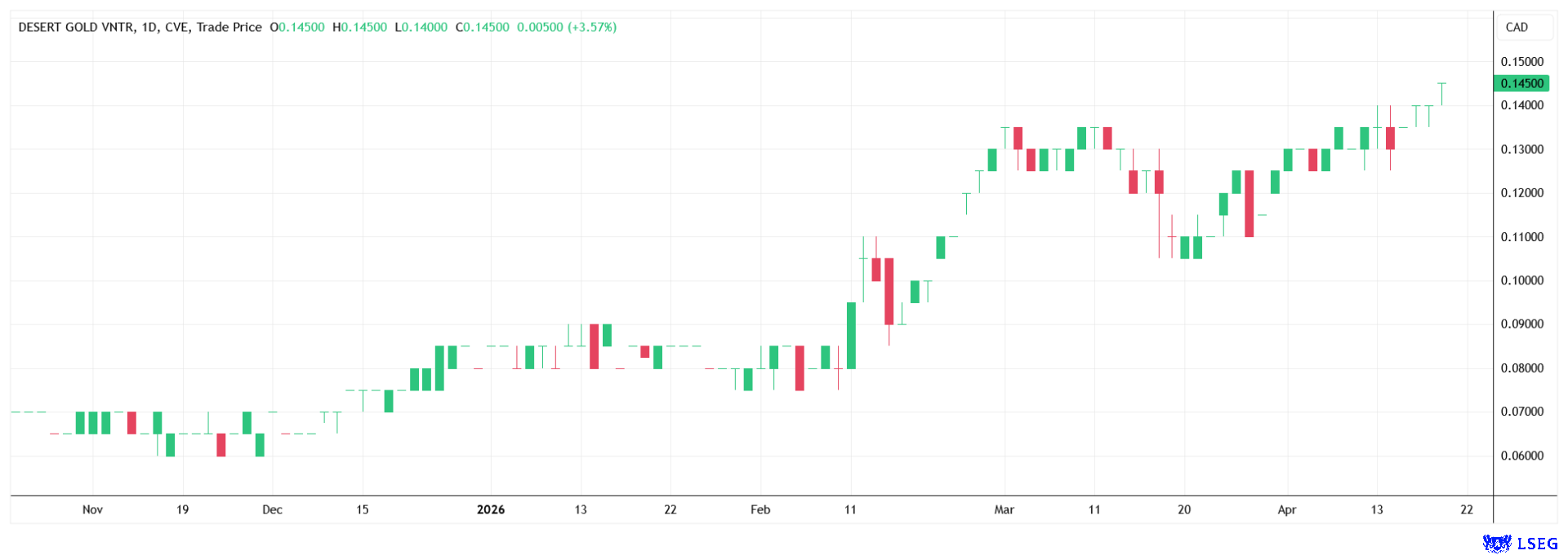 Desert Gold hat in letzter Zeit bewiesen, dass es nicht nur ein Explorer mit interessanten Grundstücken ist, sondern ein Unternehmen mit einem klaren Plan zur Produktion. Die Analysten von GBC Research sind bereits überzeugt und geben eine klare Kaufempfehlung mit einem Kursziel von 0,59 EUR (ca. 0,95 CAD) ab. Das ist ein Wort, wenn man den aktuellen Kurs betrachtet. Ein wichtiger Meilenstein war dabei das kürzlich abgeschlossene Private Placement. Das Unternehmen konnte insgesamt 7.181.800 CAD einsammeln. Jede Einheit besteht aus einer Aktie und einem halben Optionsschein, der über zwei Jahre zu 0,12 CAD ausgeübt werden kann. Diese Finanzierung ist der Treibstoff, den Desert Gold braucht, um das Barani East Projekt in Mali massiv voranzutreiben.